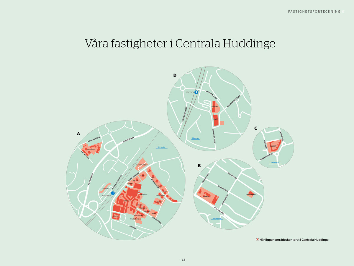 Estetiska och tydliga kartor är en självklar del av en bra årsredovisning. Kartillustration.se har skapat ett flertal kartor till H&M, Huge fastigheter, Skandia Fastigheter/Diligentia m fl.