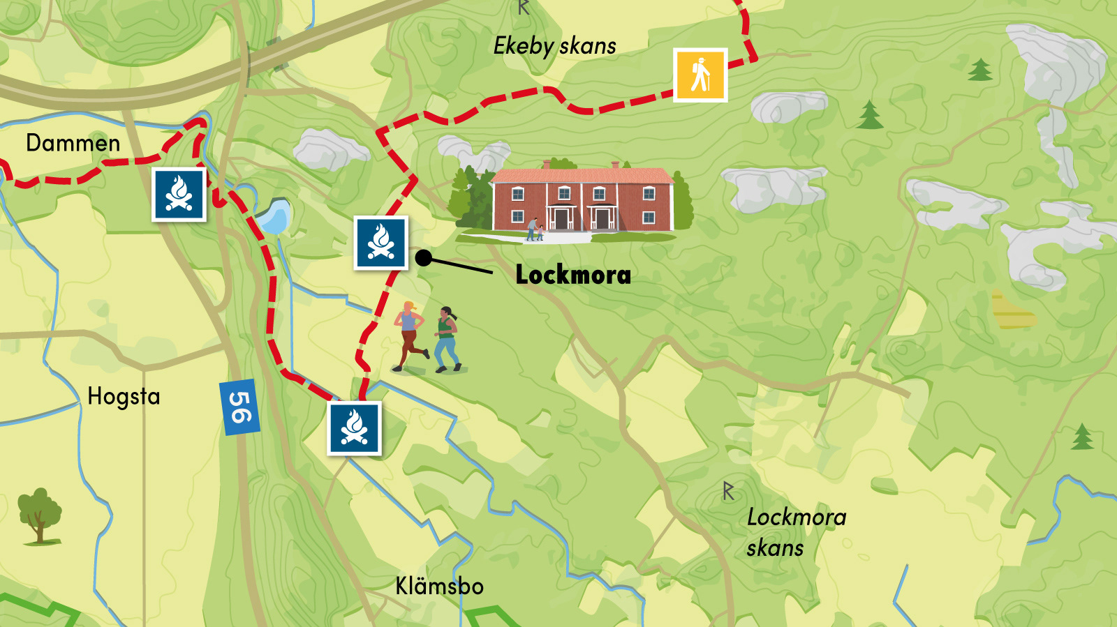 Här skulle vi skapa åtta stycken ”exakta” men också illustrativa och inspirerande kartor. Vi hämtade kartdata från Lantmäteriet vilken vi sen satte en egen prägel på. Landmärken ritades och placerades på kartorna.
