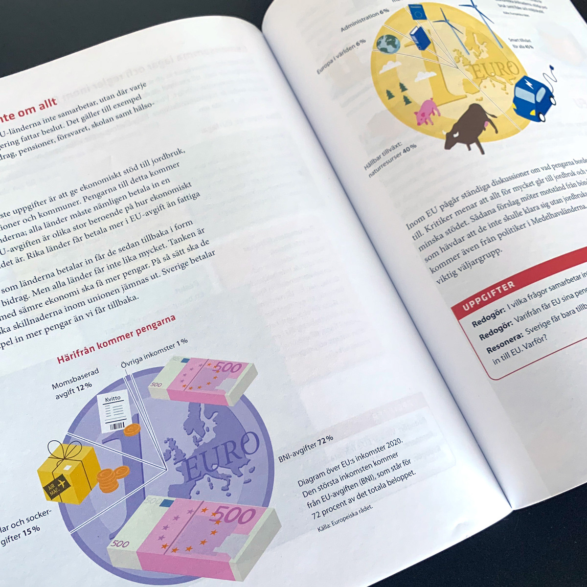 Nu har nya NoK Samhälle för åk 8 kommit ut där jag har jobbat med illustrationerna. Superkul att få förklara komplexa system med text och bild i samverkan.