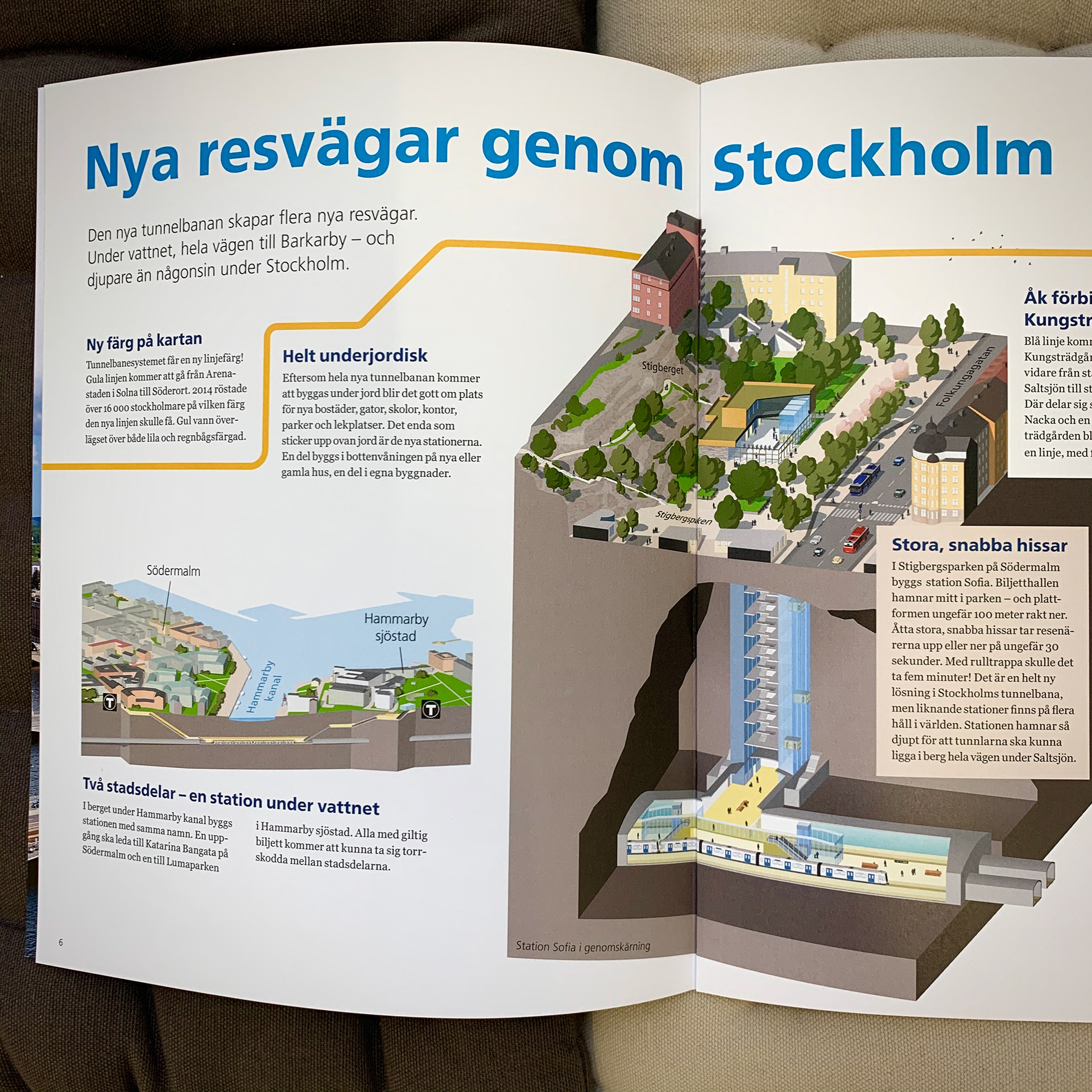 Kartor och informativa illustrationer för Nya Tunnelbanan i Stockholm